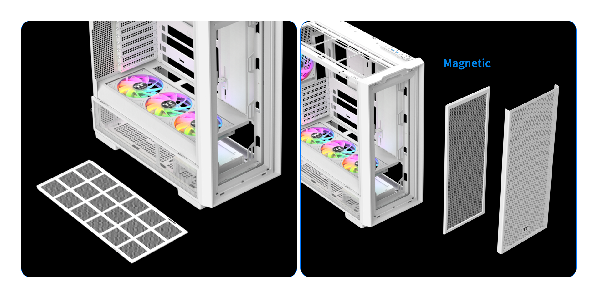 The S380 TG ARGB Snow Mid Tower Chassis comes with a GPU holder that provides additional support, preventing graphics card from sagging.