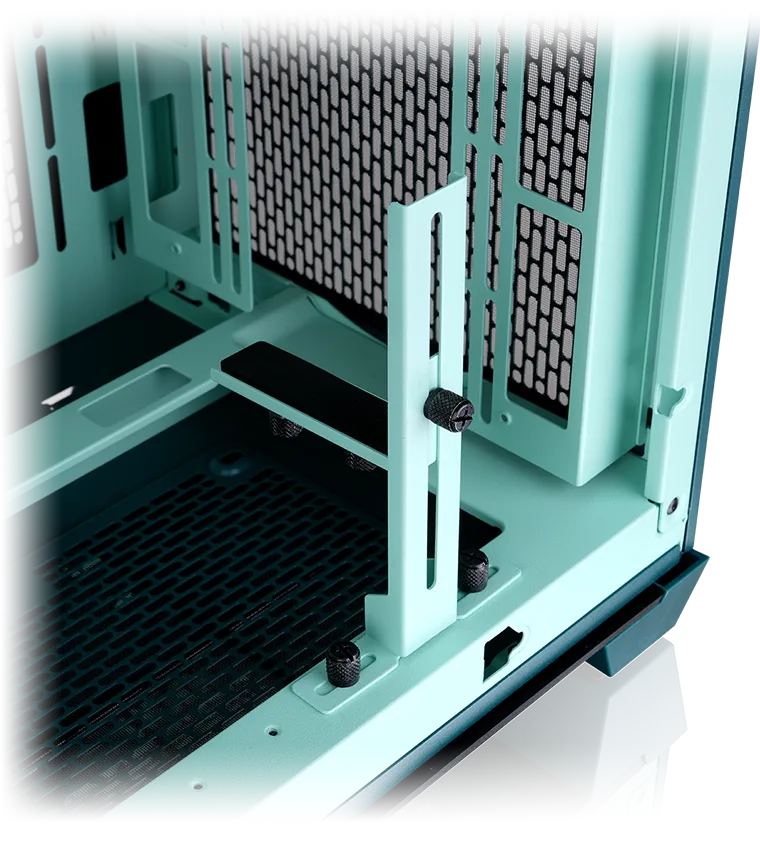 Designed for next-gen builds, the View 390 Air Transformative Teal Mid Tower Chassis supports both standard and hidden-connector motherboards from ASUS, MSI, and GIGABYTE.
