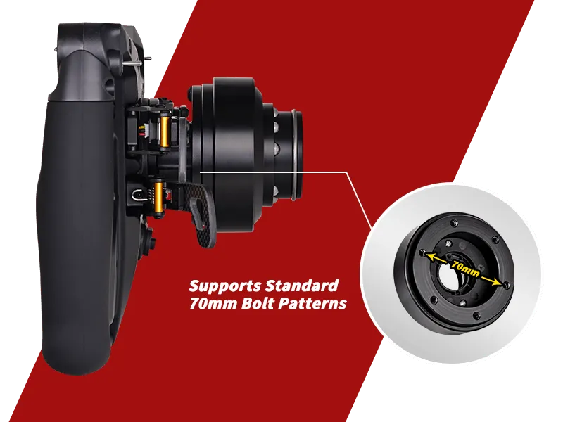 Designed with a standard 70mm mounting pattern, the adapter ensures broad compatibility with most quick-release sim racing steering wheels, allowing for flexible installation and a truly hassle-free upgrade experience.